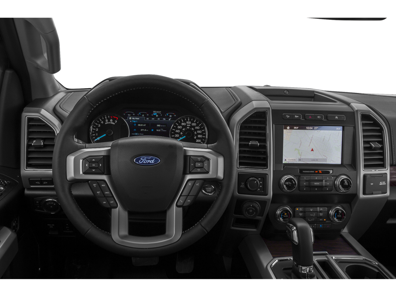 Well equipped with: Equipment Group 501A Mid (110V/400W Outlet, Power Glass Sideview Mirr w/Body-Color Skull Caps, Remote Start System w/Remote Tailgate Release, and Reverse Sensing System), FX4 Off-Road Package (Tray Style Floor Liner), GVWR: 7,050 lbs Payload Package, Lariat Bed Utility Package, Lariat Chrome Appearance Package (Chrome 2-Bar Grille w/4 Minor Bars, Chrome Angular Step Bars, Chrome Door & Tailgate Handles w/Body-Color Bezel, Chrome Skull Caps on Exterior Mirrors, Single-Tip Chrome Exhaust, and Wheels: 18 Chrome-Like PVD), Trailer Tow Package (Class IV Trailer Hitch Receiver, Engine Oil Cooler, Pro Trailer Backup Assist, and Upgraded Front Stabilizer Bar), 4WD, 18 Machined-Aluminum Wheels, 4-Wheel Disc Brakes, 7 Speakers, ABS brakes, Adjustable pedals, Air Conditioning, Alloy wheels, AM/FM radio: SiriusXM, Auto High-beam Headlights, Auto-dimming door mirrors, Auto-dimming Rear-View mirror, Automatic temperature control, Brake assist, Bumpers: chrome, Compass, Delay-off headlights, Driver door bin, Driver vanity mirror, Dual front impact airbags, Dual front side impact airbags, Electronic Stability Control, Emergency communication system: SYNC 3 911 Assist, Extended Range 36 Gallon Fuel Tank, Exterior Parking Camera Rear, Front anti-roll bar, Front Center Armrest w/Storage, Front dual zone A/C, Front fog lights, Front License Plate Bracket, Front reading lights, Front wheel independent suspension, Fully automatic headlights, Heated door mirrors, Heated front seats, Illuminated entry, Leather-Trimmed 40/20/40 Front Seat, LED Sideview Mirror Spotlights, Low tire pressure warning, Memory seat, Occupant sensing airbag, Outside temperature display, Overhead airbag, Overhead console, Panic alarm, Passenger door bin, Passenger vanity mirror, Pedal memory, Power door mirrors, Power driver seat, Power passenger seat, Power steering, Power windows, Radio data system, Radio: AM/FM Stereo w/6 Speakers, Rear reading lights, Rear seat center armrest, Rear step bumper, Rear window defroster, Remote keyless entry, Security system, SiriusXM Radio, Speed control, Speed-sensing steering, Split folding rear seat, Steering wheel mounted audio controls, SYNC 3, Tachometer, Tailgate Step w/Tailgate Lift Assist, Telescoping steering wheel, Tilt steering wheel, Tough Bed Spray-In Bedliner, Traction control, Trip computer, Turn signal indicator mirrors, Variably intermittent wipers, Ventilated front seats, Voice-Activated Touchscreen Navigation, Voltmeter, and Wheels: 20 Chrome-Like PVD.