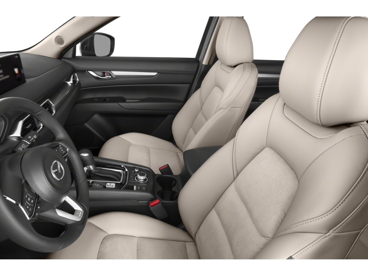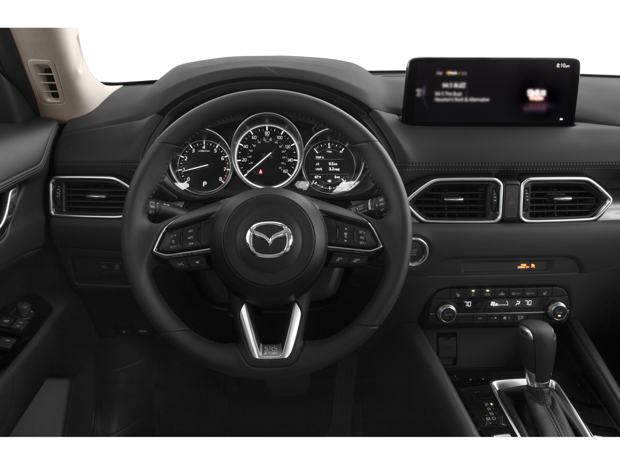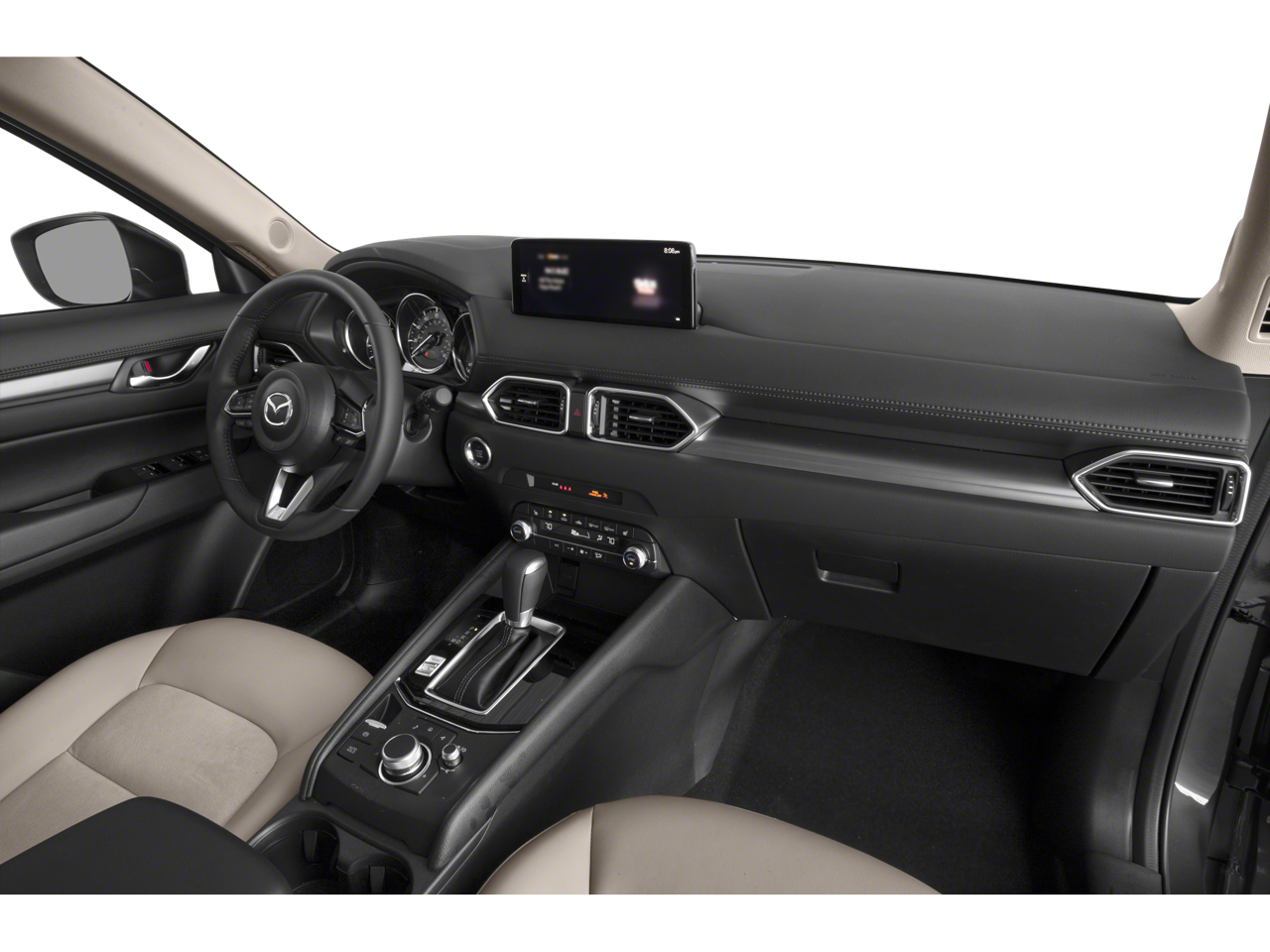 Step inside the CX-5 and be greeted by a spacious and well-appointed interior, designed with your comfort and convenience in mind. The Leatherette-trimmed seating surfaces, heated front seats, and dual-zone automatic climate control create a premium ambiance, while the advanced infotainment system with voice commands, Apple CarPlay, and Android Auto keeps you connected and entertained.
