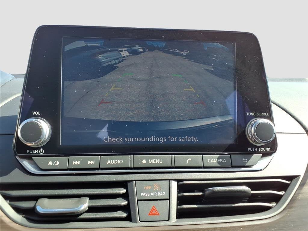 Well equipped with: CVT with Xtronic, 17 Alloy Wheels, 4-Wheel Disc Brakes, 6 Speakers, ABS brakes, Air Conditioning, Alloy wheels, AM/FM radio: SiriusXM, Auto High-beam Headlights, Blind Spot Warning, Brake assist, Bumpers: body-color, Cloth Seat Trim, Delay-off headlights, Driver door bin, Driver vanity mirror, Dual front impact airbags, Dual front side impact airbags, Electronic Stability Control, Floor Mats/Trunk Mat/Hideaway Net, Four wheel independent suspension, Front anti-roll bar, Front Bucket Seats, Front Center Armrest, Front reading lights, Fully automatic headlights, Illuminated entry, Knee airbag, Low tire pressure warning, NissanConnect featuring Apple CarPlay, Occupant sensing airbag, Outside temperature display, Overhead airbag, Overhead console, Panic alarm, Passenger door bin, Passenger vanity mirror, Power door mirrors, Power driver seat, Power steering, Power windows, Radio data system, Radio: AM/FM Audio System, Rear anti-roll bar, Rear Parking Sensors, Rear reading lights, Rear seat center armrest, Rear side impact airbag, Rear window defroster, Remote keyless entry, Security system, Speed control, Speed-sensing steering, Speed-Sensitive Wipers, Split folding rear seat, Steering wheel mounted audio controls, Tachometer, Telescoping steering wheel, Tilt steering wheel, Traction control, Trip computer, and Variably intermittent wipers.